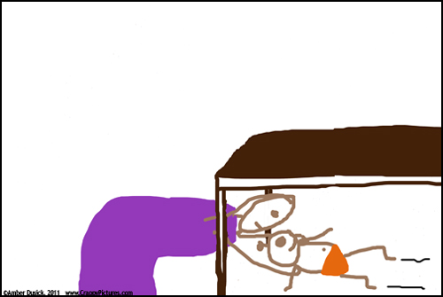 Like a ninja, I grab a second distraction object. Using only my mind because I can’t let go of anything. Telekinesis rocks.